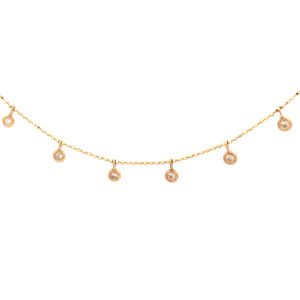 14 Karat Diamond Drop Necklace 9 Round Diamonds Totaling 0.30 Ct Total Diamond Weight